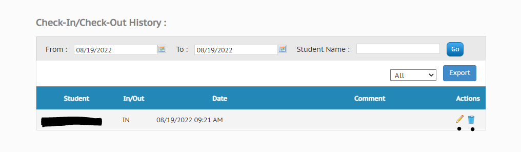 Once in the Check-In/Check-Out History, the Actions section will give you two option for each entry: