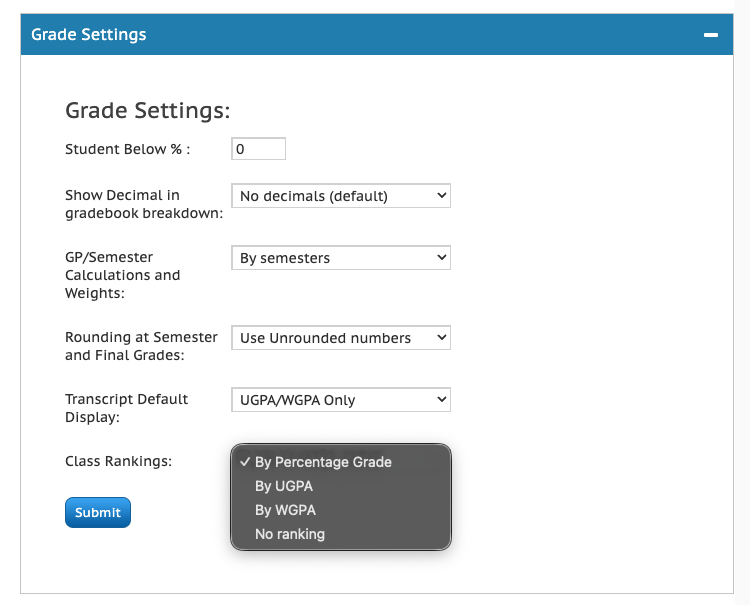 This guide will walk you through setting up your students' class rankings, in order to help determine things like which student is Valedictorian or Salutatorian.