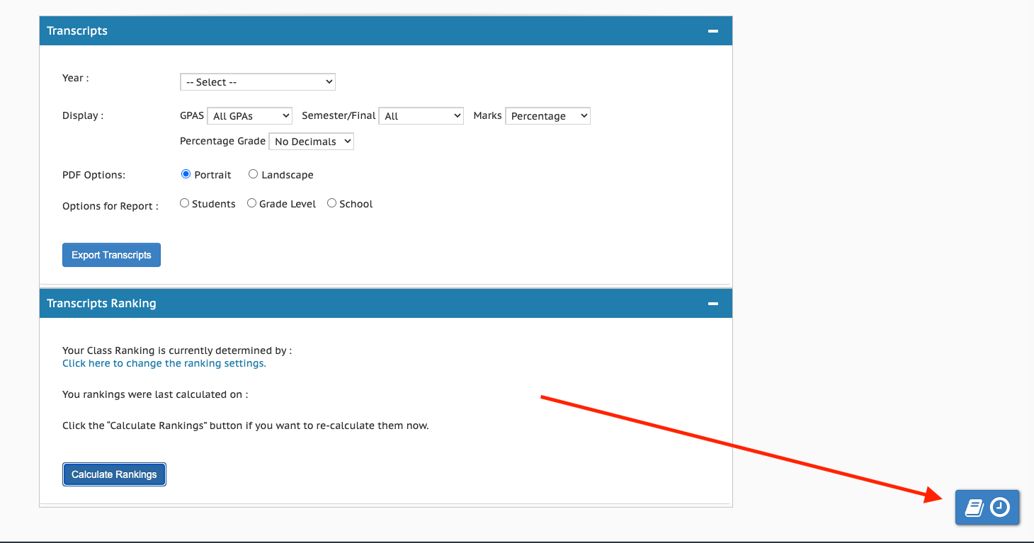 Once all of the student's grade have been entered and you are ready to generate transcripts or to identify top rankings, you'll need to run the calculations.